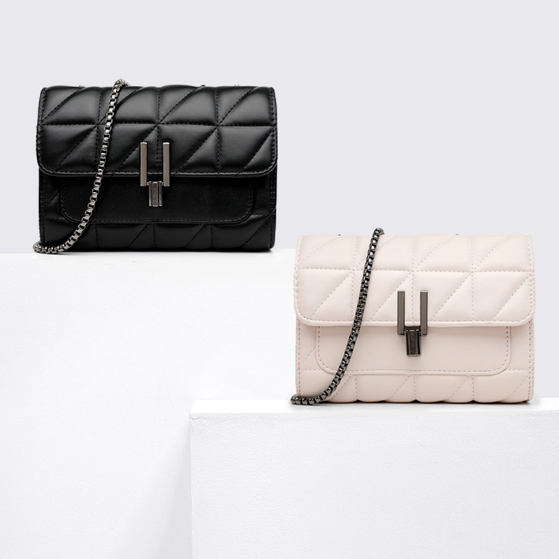 Bolsa tiracolo média. O modelo tem formato retangular, compacto e laterais arredondadas. Traz alça lateral fina em tira, corrente metálica e fecho em tampo frontal e com encaixe. Com costura pesponto no contorno e matelassê.